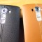 A jobb oldalon látható G4 felületi textúrája élethűen utánozza a bőrt, ám tapintásra inkább a Note 4 adja vissza az eredeti érzést. Készülékházát hosszirányban kissé meghajlították, aminek nincs funkcionális haszna, inkább egyedi dizájnelemnek tekinthetjük.